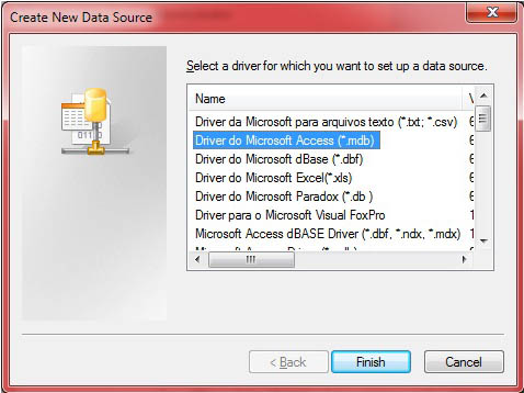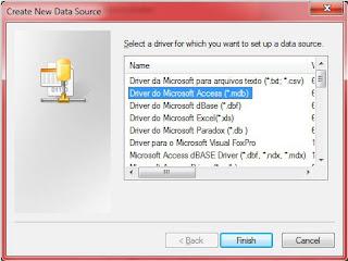 7. Maka akan muncul jendela Data Source (ODBC), pilih tab System DSN. Buat data source dengan cara klik tombol add. Maka akan muncul jendela untuk pemilihan Driver DBMS, kita pilih driver Microsoft Access .mdb karena database yang kita buat menggunakan Ms Access, klik tombol finish.