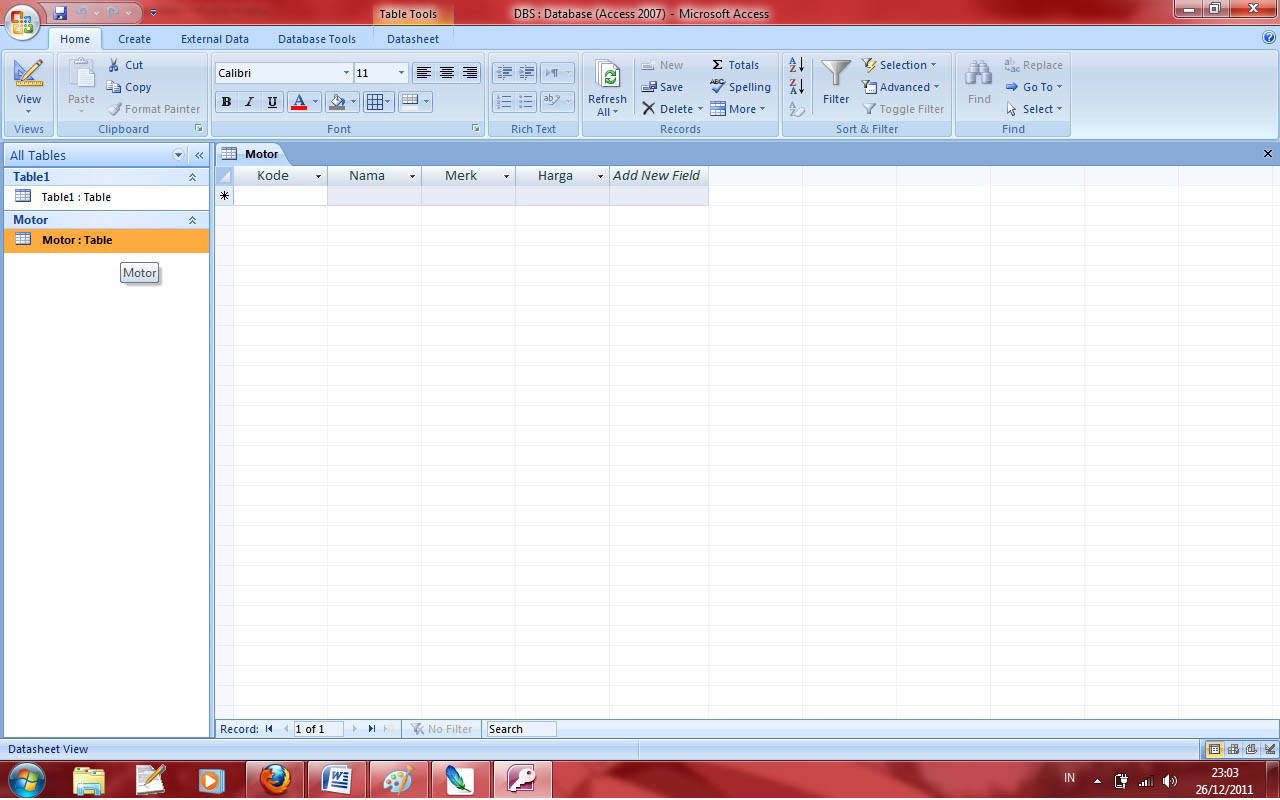 selanjutnya kik OK. Klik 2 kali pada tabel motor dan isi data pada kolom